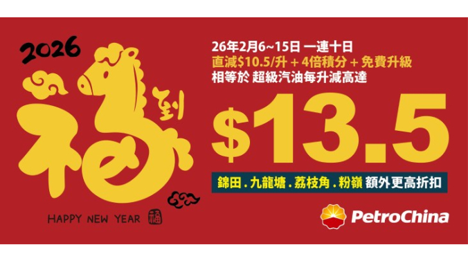 于锦田、九龙塘、荔枝角及粉岭站入油,更享额外惊喜优惠,让您新年出行畅快无忧!*^